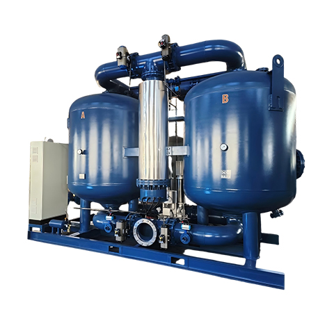 微气耗鼓风加热再生吸附式压缩空气干燥机是由鼓风机吸入环境空气加热到~170℃左右对吸附剂进行再生,其后需要~2%的净化压缩空气减压进行冷却,这样设计的目的是在吸附剂得到彻底脱附,确保露点温度长期稳定的基础上,将净化空气的产量进一步提高。其可应用于所有的高品质压缩空气需求之生产系统。